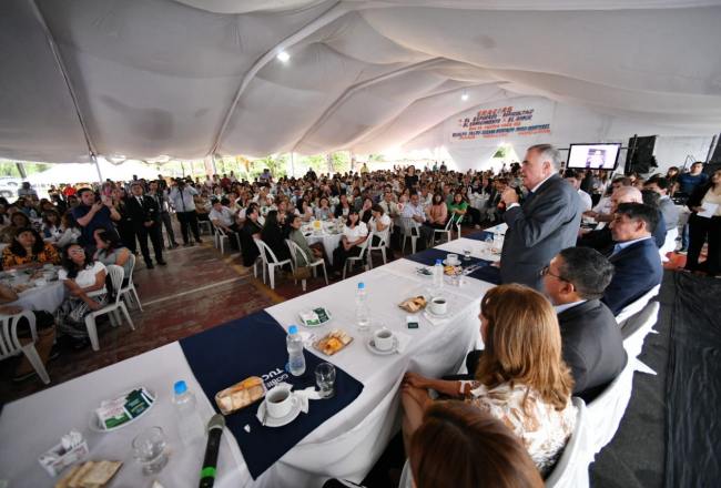En cuanto al valor del trabajo interministerial en beneficio de más de 500 mil alumnos en toda la provincia, Jaldo analizó: “Susana Montaldo, no puede sola, no puede sola con un área tan importante. Por eso es que hoy tiene el respaldo de todos los que estamos acá. Y para nosotros la educación no es solamente una política de Estado desde el punto de vista del dicho o de la palabra. Nosotros con hechos concretos estamos demostrando. Con el boleto estudiantil, estamos demostrando con el pago del seguro, estamos demostrando con haciéndonos cargo del incentivo docente. Estamos demostrando de escuchar a quienes representan a los docentes para que haya una paritaria que se llegue a un buen puerto. Es decir que estamos haciendo un gran esfuerzo como gobierno de la provincia para que realmente las clases empiecen en tiempo y forma”.
