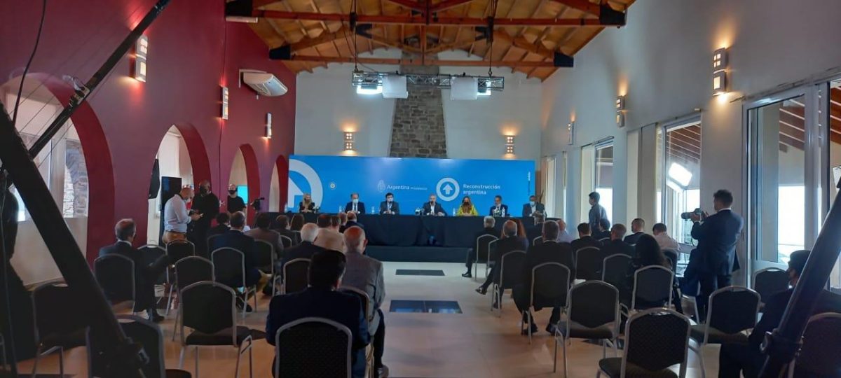 Acompañan a Fernández, el Jefe de Gabinete, Santiago Cafiero, el titular de la cartera del Interior, Eduardo de Pedro; de Desarrollo Productivo, Matías Kulfas y de Economía, Martín Guzmán.