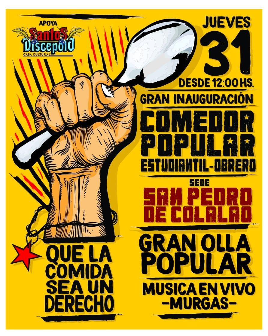 San Pedro de Colalao fue el lugar elegido para inaugurar este jueves el Comedor Popular Estudiantil-Obrero, bajo la premisa “Que la comida sea un derecho”. Estará ubicado en la esquina de San Martín y Ayacucho, a pocos metros del puente colgante, y ofrecerá un menú diario a $25.