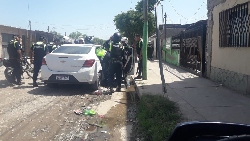 Minutos después de las 11 de la mañana, personal de Motoristas del 911 realizaban recorridos preventivos cuando a través del Sistema de Emergencia 911 tomaron conocimiento de que en la rotonda de San Cayetano, personas que participaban de un acompañamiento fúnebre circulaban en un automóvil de color blanco y dos motocicletas realizando disparos.