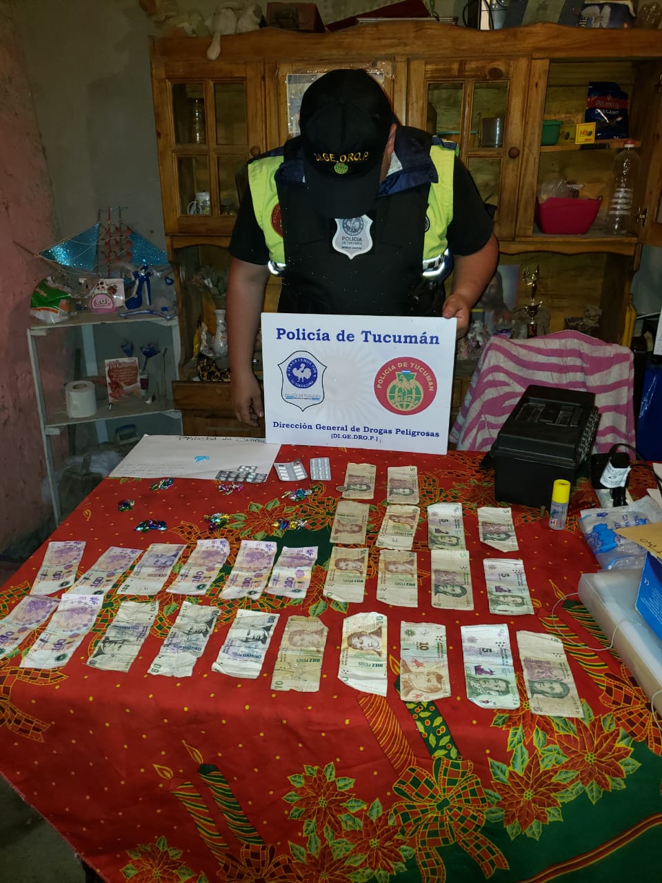 El procedimiento se llevó adelante en una vivienda de callle Martín Berho al 1.300. Los efectivos no encontraron elementos relacionados a la causa pero lograron incautar $1060 en billetes de baja denominación, 62 envoltorios con cocaína, 18 pastillas de Alprazolam y 13 Pastillas de Clonazepam.