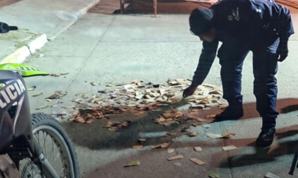 Según la información oficial, efectivos de la Comisaría de Aguilares, que realizaban recorridos preventivos, fueron alertados por el sistema de monitoreo municipal sobre la presencia de un objeto sospechoso en calle Laprida al 400. Al llegar, constataron que se trataba de una caja de cartón negra con billetes de $1.000, $500 y $100, muchos de ellos con signos visibles de haber sido alcanzados por el fuego.