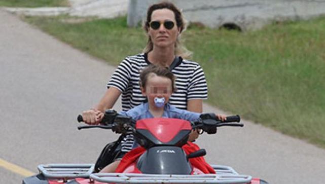 En cambio, la pareja de Federico Álvarez Castillo fue mucho menos cuidadosa cuando decidió salir a la ruta. Porque lo hizo en su cuatriciclo, sin portar casco. Tomó el manubrio de un solo extremo, mientras con el otro brazo sostenía a Iñaki: el niño tampoco tenía puesto un casco. Y si bien es cierto que circuló a baja velocidad, la acción es imprudente. Cuanto menos