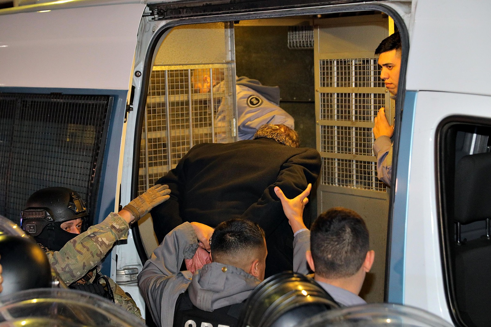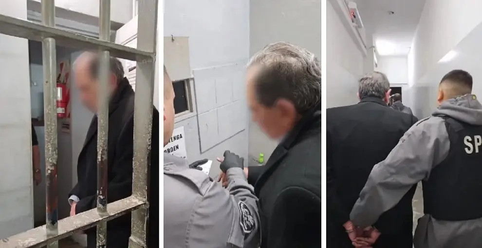 En las redes sociales se difundieron videos en los que se ve a Alperovich llegando a Ezeiza, donde le pintan los dedos y luego una fuerte custodia lo acompaña a su celda.
