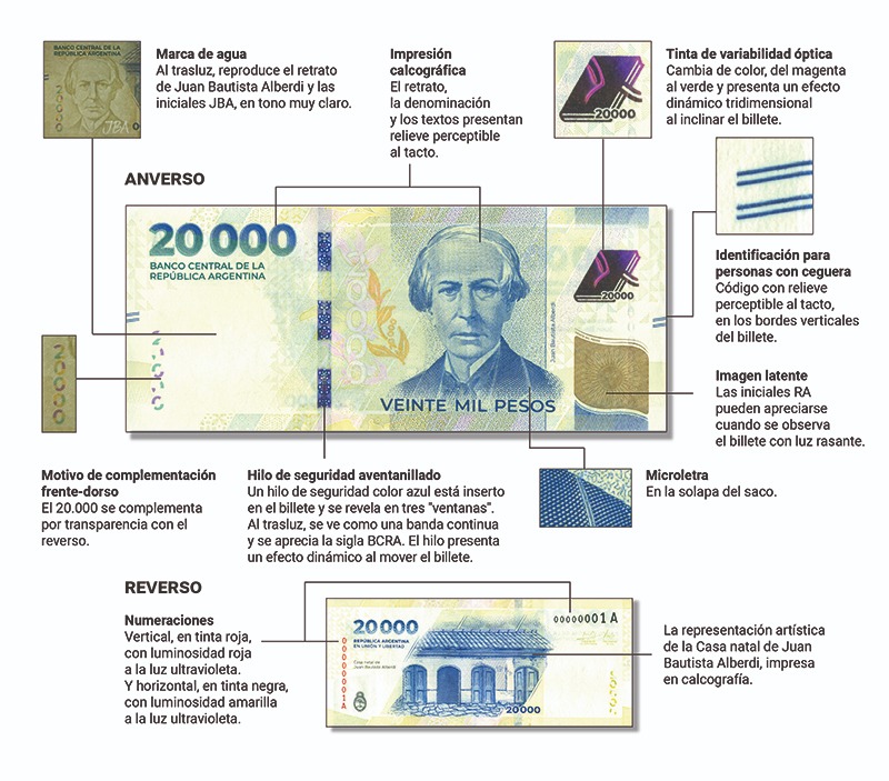 La Policía Científica brindó recomendaciones claves para evitar ser estafados con billetes falsos de 20.000 pesos, la nueva denominación que ya está en circulación en Argentina. Este billete, que lleva en el anverso la imagen de Juan Bautista Alberdi y en el reverso su casa natal, cuenta con varias medidas de seguridad que permiten confirmar su autenticidad.