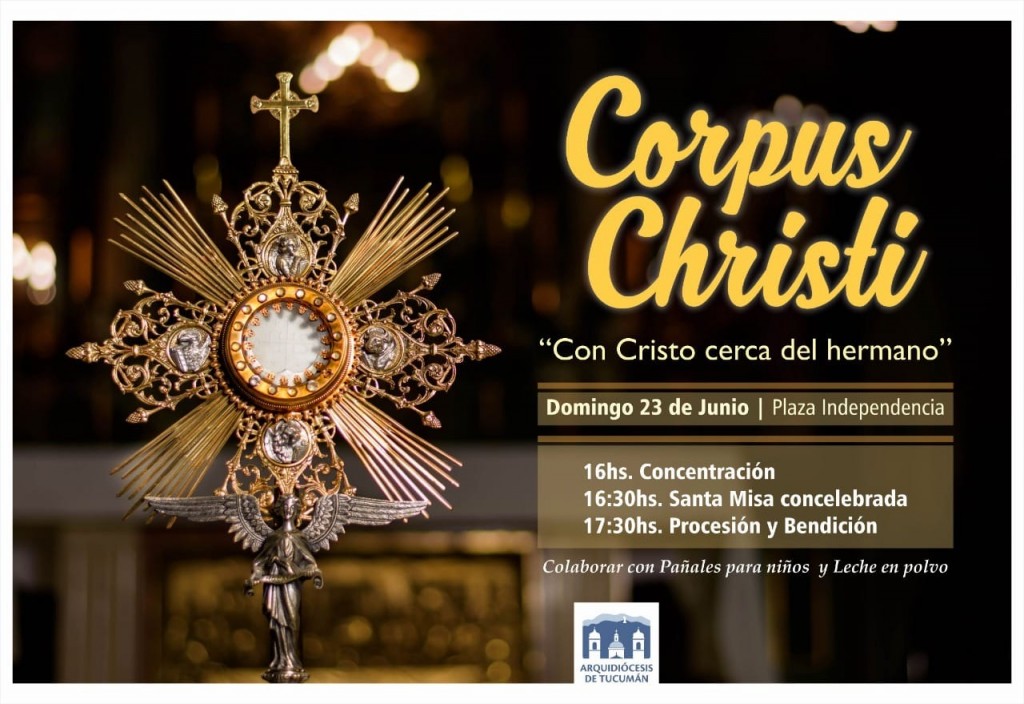 Este domingo se celebrará la tradicional Fiesta Diocesana de Corpus Christi en la Plaza Independencia. La celebración será presidida por el Obispo Carlos Sánchez y este año tendrá la particularidad de contar con la presencia de la Imagen Peregrina de la Virgen del Valle que nos visita desde su Santuario de Catamarca.