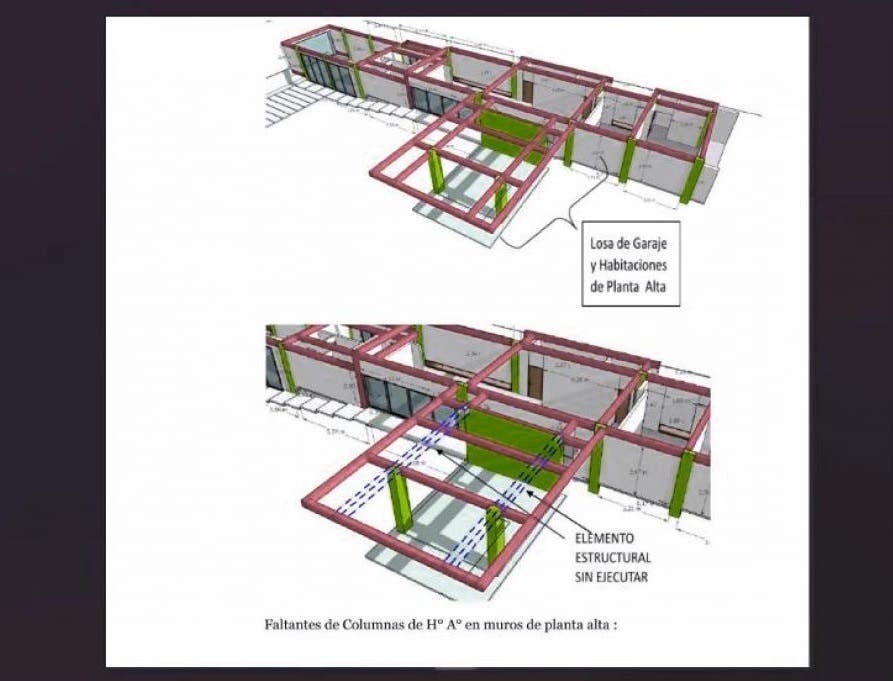 Según el informe del Auxiliar de Fiscal, Rodrigo Bilbao, la investigación también involucra a un tercer implicado, un técnico constructor de 37 años. El caso se basa en un informe de un arquitecto que detalló las serias fallas estructurales en la obra, como la falta de vigas y materiales necesarios, lo que pone en riesgo la seguridad de la familia que habita la casa. Además, se descubrió que la empresa encargada de la obra no estaba registrada en el Registro Público de Comercio.