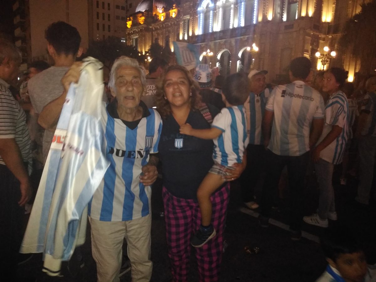 Entre los tucumanos que festejaban en “Plaza Independencia” encontramos a Luisito, un abuelo de 86 años que vio al Racing de sus amores todas las veces campeón. “La última vez que salió campeón me decían que no lo volvería a ver campeón nunca más y miré una vez más festejando” le relató a TucsinFiltro con lágrimas en los ojos.