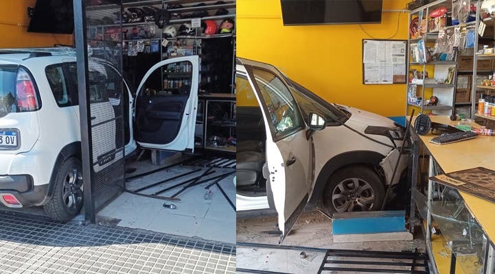 Un auto terminó dentro de un negocio de repuestos para motos en la avenida Roca al 2300 debido a una mala maniobra.