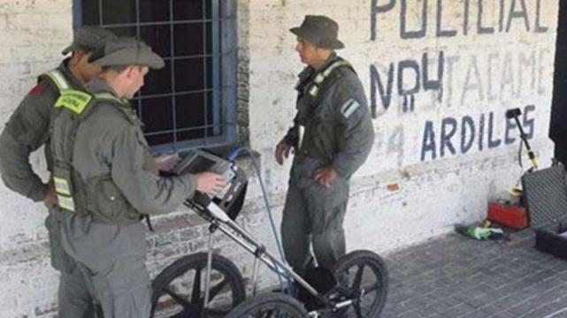 La pesquisa es realizada por personal de Gendarmería Nacional con la ayuda de expertos que utilizan un gerroradar a fin de detectar si existen elementos extraños debajo de la superficie.