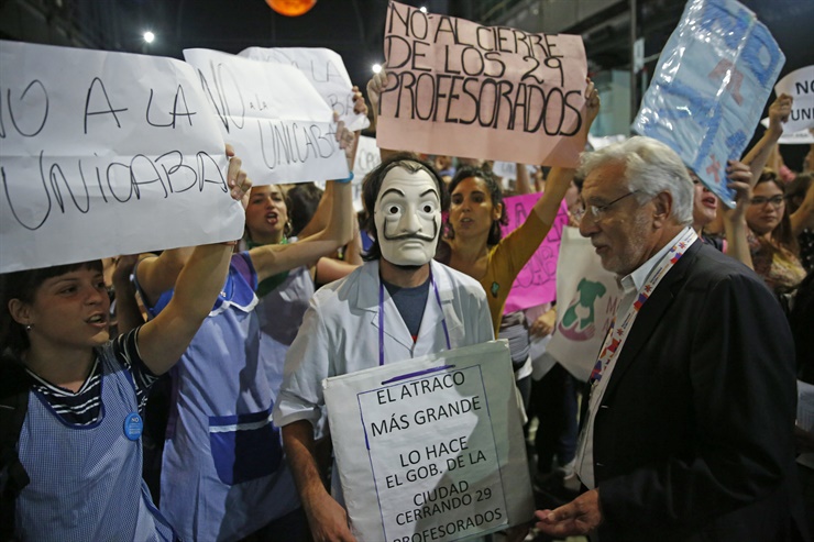 En el lugar menos pensado. A poco de iniciado el acto de apertura de la Feria Internacional del Libro de Buenos Aires, un grupo de manifestantes de los profesorados porteños protestaron contra el proyecto de creación de una universidad para docentes en la ciudad de Buenos Aires (UniCABA).