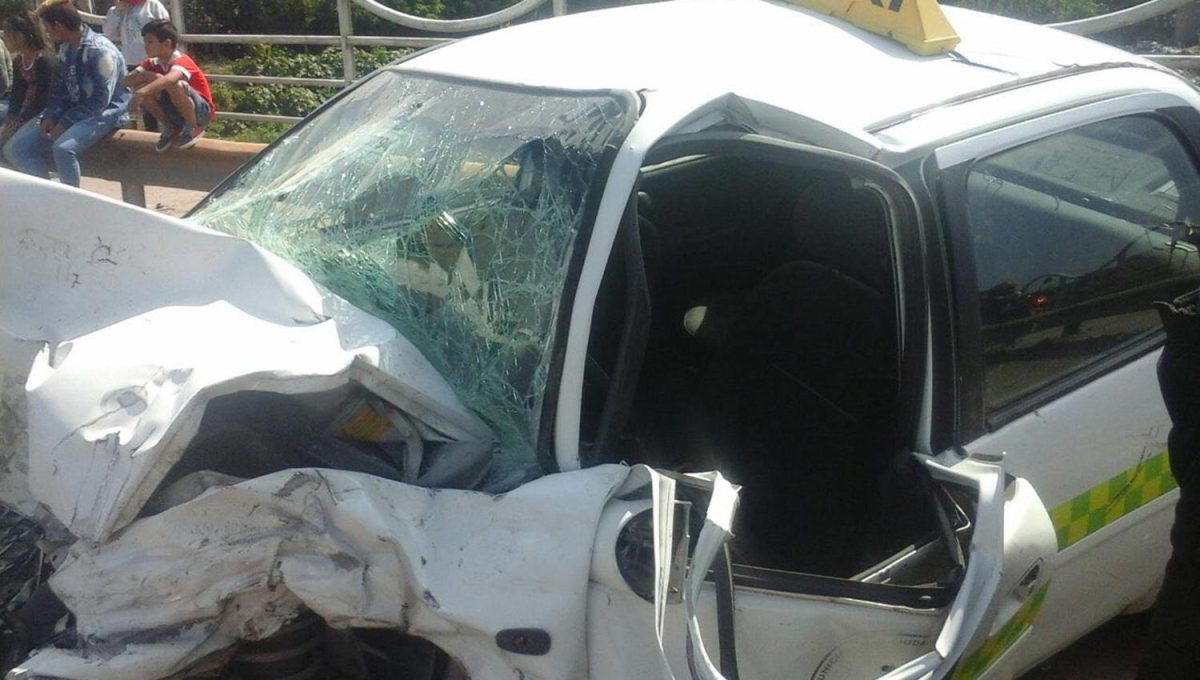 EL horrible siniestro ocurrió entre un taxi y una camioneta se produjo pasado este mediodía en la autopista Juan Domingo Perón, a la altura del puente Barros, sin que se produjeran víctimas fatales.