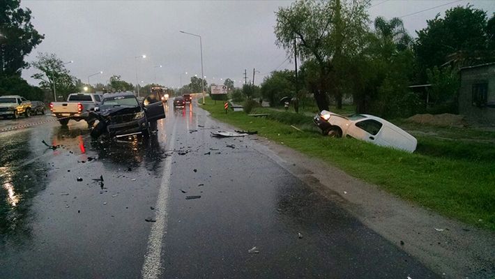 Una Toyota Hilux y un Renault Kangoo impactaron de frente en la ruta 38 a la altura del Barrio Matadero (calle Ignacio Sorroza) bajo la intensa lluvia que cayó en toda la provincia.