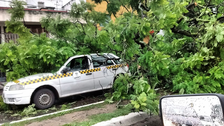 Un inmenso árbol se desplomó en la mañana de este sábado sobre tres taxis.