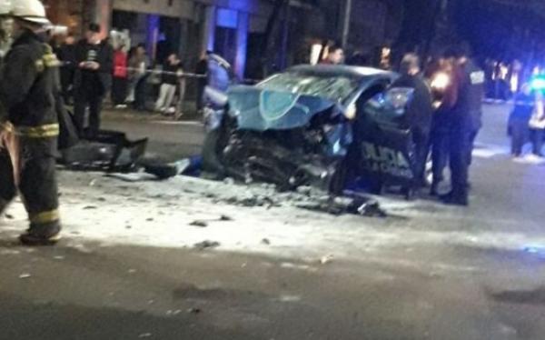 Un video que se conoció en la madrugada de este jueves muestra el impactante momento en que un patrullero choca con un colectivo durante una persecución a ladrones, de contramano y a toda velocidad.