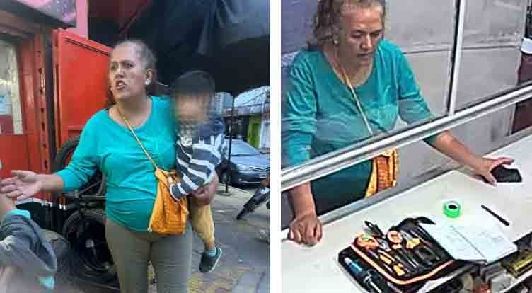 Una mujer fue filmada este lunes por cámaras de seguridad mientras robaba un celular en una ferretería ubicada en El Bajo, sobre avenida Brígido Terán al 100. Aprovechó un descuido del personal para llevarse el teléfono que estaba sobre el mostrador, y fue detenida minutos después por la policía en la esquina de Charcas y Brígido Terán. En el momento del robo, la mujer estaba acompañada por un niño.