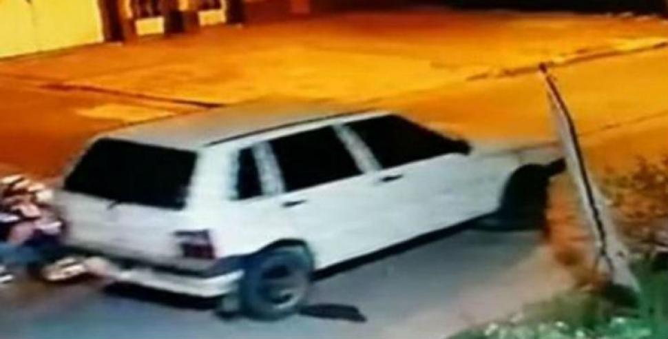 En las imágenes que captó una cámara de seguridad se ve claramente cómo un motociclista se roba el auto de Guzmán empujándolo con una moto. Impresionante: