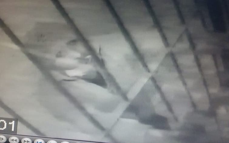 El registro fílmico es de cerca de la 1.56 de la madrugada del jueves, el hombre realiza el robo y en las imágenes se puede observar cómo intenta empujar el vidrio de la puerta del local para voltearlo. Posteriormente desiste y busca un escombro con el que finalmente logra el cometido, rompe el vidrio, y extrae artículos.