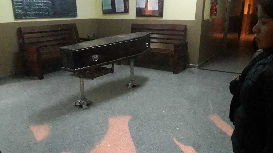 Insólito: Llevan un féretro y lo ponen en el hall de una comisaría