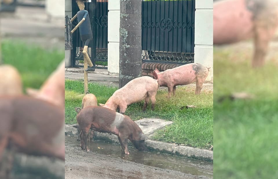 Vecinos del Barrio Omodeo, ubicado en la zona de Santa Fe y 25 de Mayo en el oeste de Monteros, vivieron un momento inusual cuando se encontraron con seis cerdos deambulando por la calle Santa Fe. Una vecina captó el sorprendente momento y compartió la situación en redes sociales, expresando sentimientos encontrados entre la risa y la indignación.