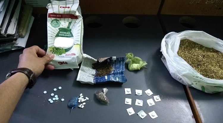 Cada vez que un familiar realiza una visita a los presos, el personal de la Comisaria tiene la obligación de revisar la mercadería que intentan ingresar. La joven, que vive en El Manantial, llevaba un paquete de yerba mate, donde escondió pastillas azules, marihuana picada y cocaína, con intenciones de entregarle a su hermano que está detenido por tentativa de robo agravado.
