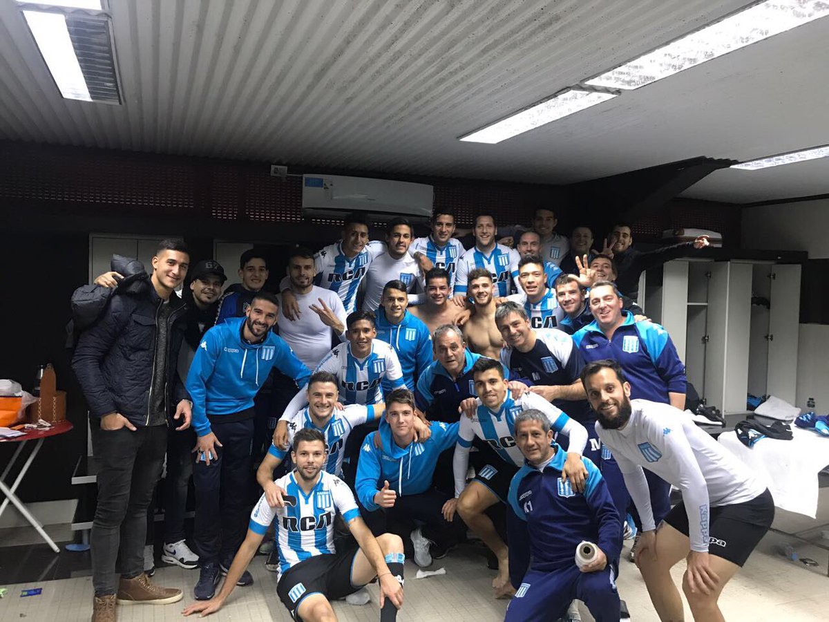 Matías Zaracho no se aguantó la alegría del triunfo de Racing ante River en el estadio Monumental y compartió una foto junto a Ezequiel Videla para celebrar. Sin embargo, no se dio cuenta de un pequeño detalle: detrás de él, Luciano Aued no se había terminado de cambiar y apareció como Dios lo trajo al mundo.