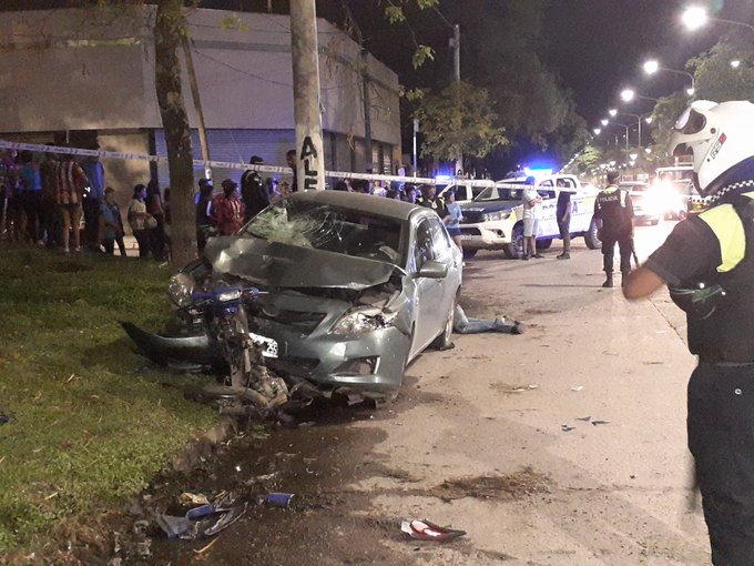 Un automovilista chocó a dos individuos que se trasladaban en una moto por avenida Adolfo de la Vega. Uno de los ellos perdió la vida producto de las graves heridas que le provocó el fuerte impacto. De acuerdo a las primeras versiones, se trataría de un nuevo caso de justicia por mano propia.