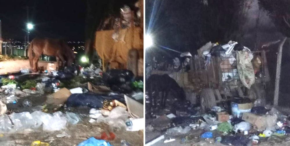 Según explicaron los residentes, el inconveniente se concentra en un sector donde se colocaron carros usados como contenedores provisorios, que resultan insuficientes. Durante la noche, caballos sueltos rompen las bolsas y esparcen los desechos por la calle, generando suciedad, malos olores y una mala imagen en un espacio próximo a la calle principal y a barrios residenciales.