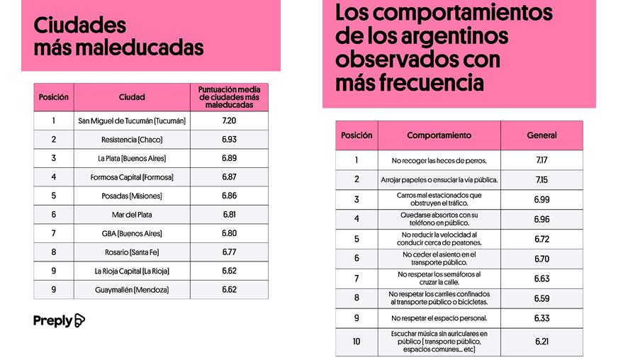 Según las encuestas a residentes locales, San Miguel de Tucumán, Resistencia (Chaco) y La Plata son las tres ciudades más afectadas por comportamientos maleducados, como la falta de limpieza en espacios públicos y la falta de consideración hacia los demás.