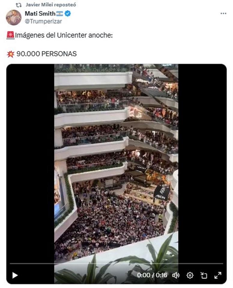 En las vísperas de Navidad, el presidente Javier Milei compartió en sus redes sociales un video que aseguraba que 90.000 personas habían visitado el shopping Unicenter, en Buenos Aires, para realizar compras navideñas. Sin embargo, el dato era falso: las imágenes correspondían al Tianhe Shopping Mall, un centro comercial en Guangzhou, China, y no al reconocido establecimiento bonaerense.