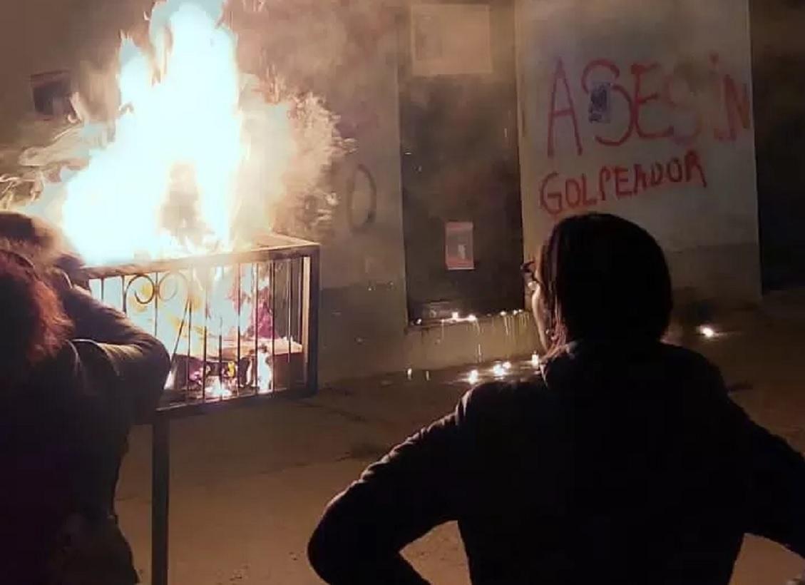 Anoche hubo recriminaciones y reclamos frente a la comisaría de Trancas ante unos demudados policías de uniforme que eran filmados y apenas podían hablar. Intercambio de palabras. Asombro por las cosas que se dicen.