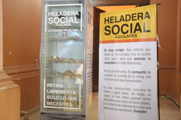 La Heladera Social nacida de una idea de tres amigos: Fernando Rios, Luis Pondal y Daniel Viñas, propietarios de la tienda de frutas y verduras “Muña Muña” ubicado en Rivadavia 431 de la capital tucumana, con el solo objetivo de guardar en dicha heladera la comida que no se consume en bares, restaurantes, verdulerías, panaderías, es decir, el sobrante para que la gente que lo necesita pueda llevarse una porción de manera gratuita, en lugar de tener que buscar los restos de basura como lamentablemente se está acostumbrado.