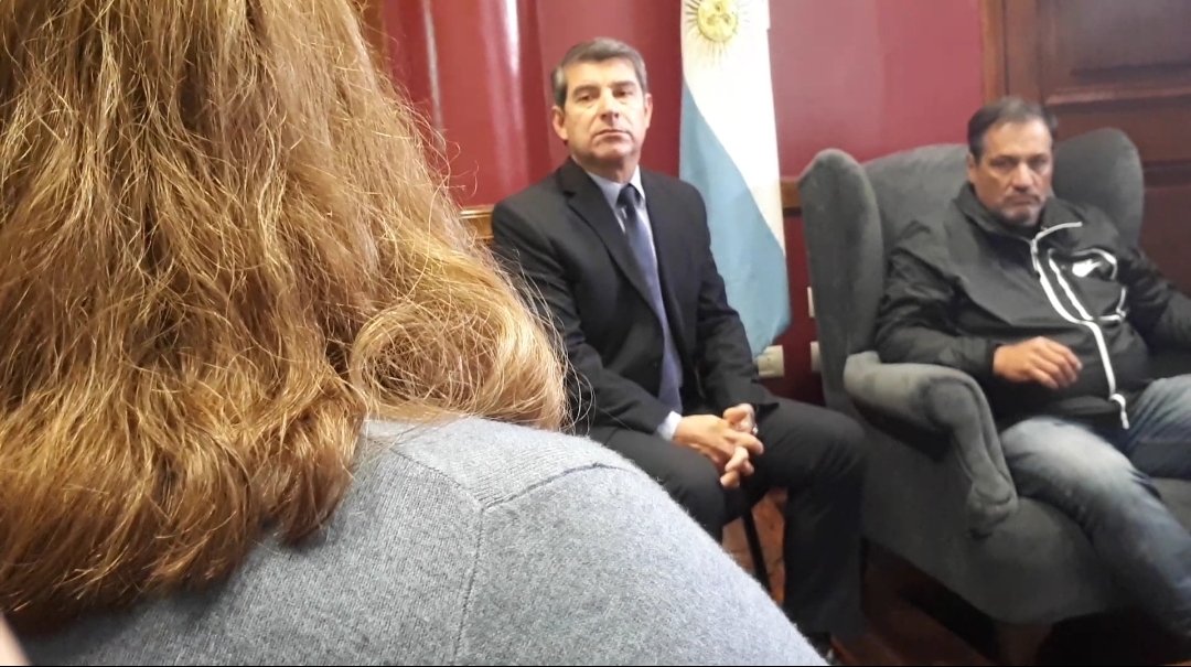 El ministro de seguridad Claudio Maley recibe a familiares de los operarios de CCC asesinados y representantes del gremio de trabajadores de televisión. "La justicia va por un lado y la policia por el otro", le dice al ministro Mabel González, esposa de Enzo Mariani, asesinado pic.twitter.com/2msU9RdUr9