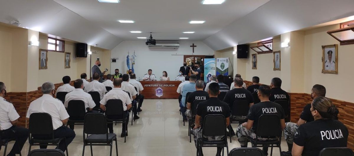 En el acto de este miércoles realizado en Jefatura de Policía, el Jefe de la fuerza, Manuel Bernachi y subjefe, Rolando Gómez, recibieron los equipos tecnológicos que fueron entregados por la directora de Flora, Fauna Silvestre y Suelos, Liliana Fortini. También estuvieron presentes el director General de Delitos Rurales y Ambientales, Julián Condorí, sus subalternos y funcionarios de Flora y Fauna.
