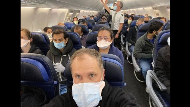 “Las personas en este avión están asustadas/conmocionadas (…) Estoy con un grupo de 25 enfermeros y médicos que han estado trabajando en hospitales de Nueva York entre las últimas dos y cuatro semanas”