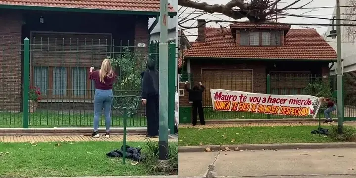 Aunque el hombre se limitó a asomarse por la ventana, las mujeres no se detuvieron y colgaron una bandera en la reja de la casa con un mensaje directo y amenazante: “Mauro, te voy a hacer mierda. Nunca te fíes de una mujer despechada”.