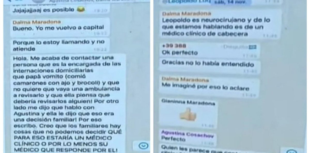 La causa por la muerte del eterno Diego Maradona que investiga la Justicia tiene los chats que, en un grupo de WhatsApp, intercambiaron sus hijas, Dalma y Gianinna; su hijo, Diego Jr; la psiquiatra Agustina Cosachov y el psicólogo Carlos Díaz. Se armó durante la internación en la clínica Olivos, del 2 de noviembre, cuando el Diez fue operado de un hematoma en la cabeza.