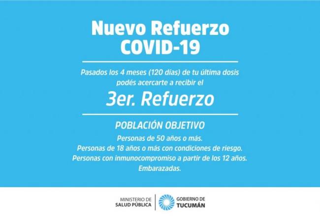 El Ministerio de Salud confirmó el inició de la vacunación del tercer refuerzo o quinta dosis de las vacunas contra la covid-19. Esta etapa está destinada a mayores de 50 años, personal de salud y personas de entre 18 a 50 años que “presenten alguna enfermedad de base que los inmunodeprima o que represente factores de riesgo de contagio”, según se informó.