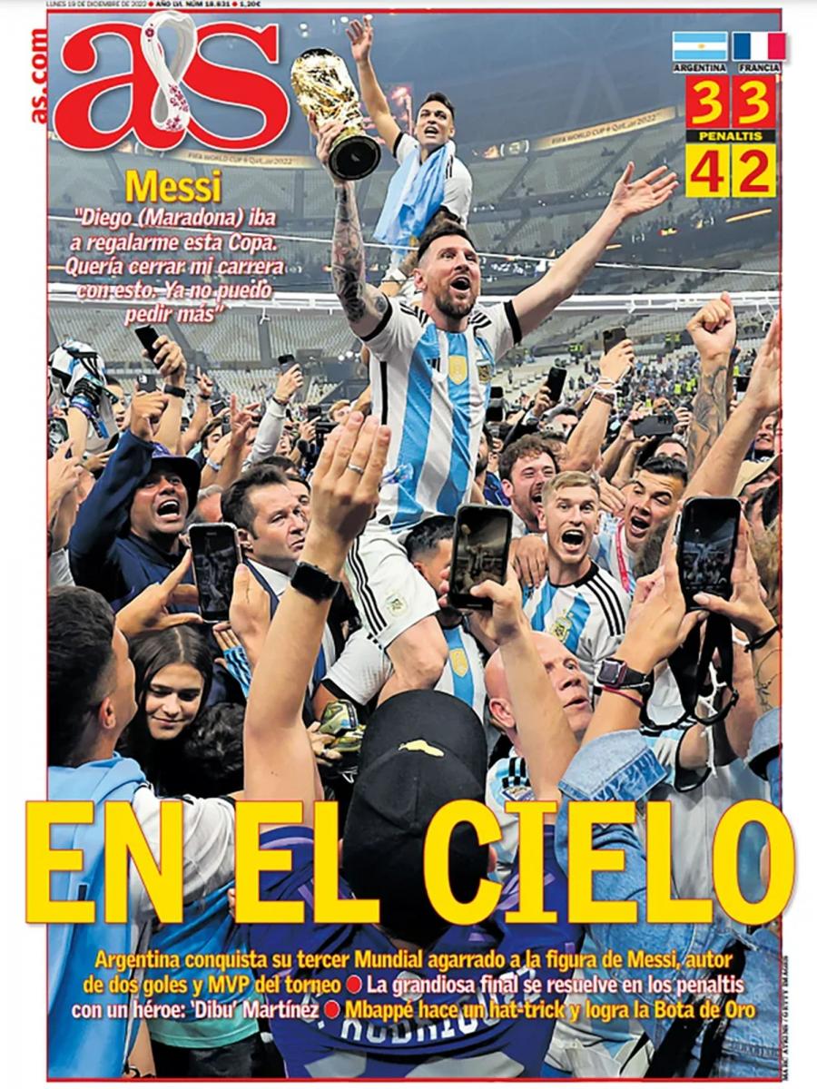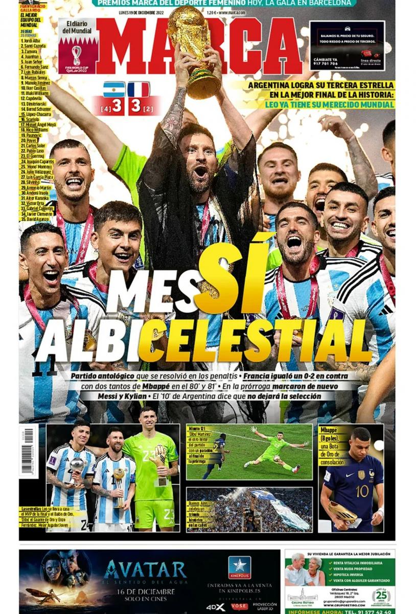 La Selección argentina ganó el Mundial de Qatar 2022 y logró su tercera estrella después de 36 años, tras un agónico alargue y una tanda de penales. Así reflejaron los principales medios del mundo este histórico triunfo.