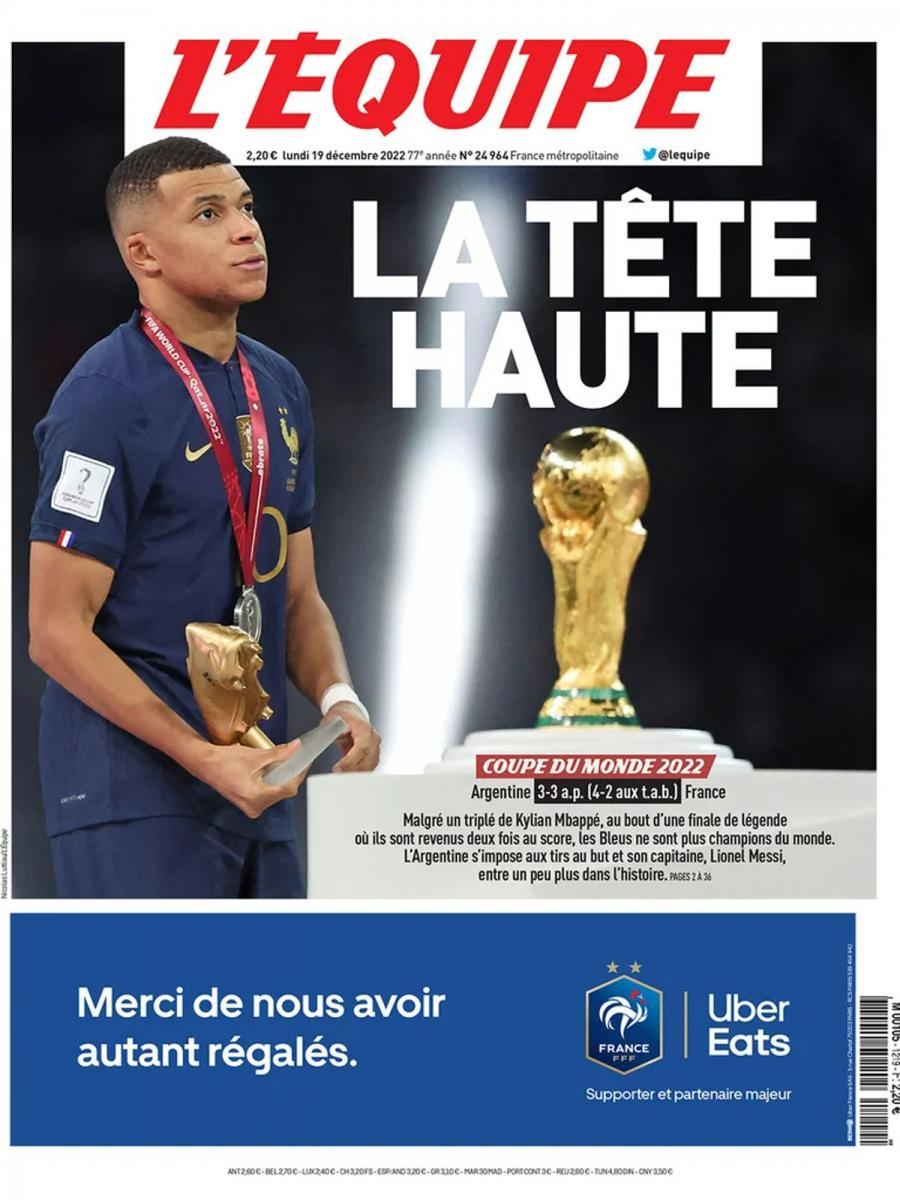 En Francia, Le Monde publicó: “Final del Mundial: los Blues pierden por penales ante Argentina, coronada por tercera vez en su historia”.