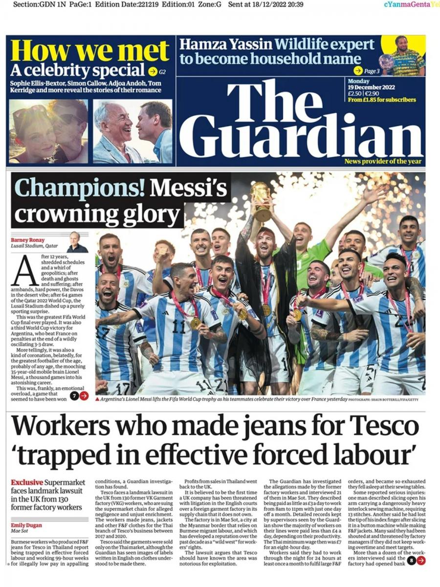 En Inglaterra, The Guardian tituló: “Argentina gana la Copa del Mundo tras derrotar a Francia después de una final impresionante”.