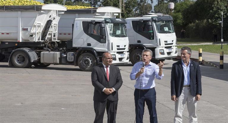 Al finalizar el discurso, Macri ordenó la partida del primer camión que trasladará un contenedor refrigerado con 30 toneladas de limones tucumanos para ser enviados mañana desde el Puerto de Rosario.