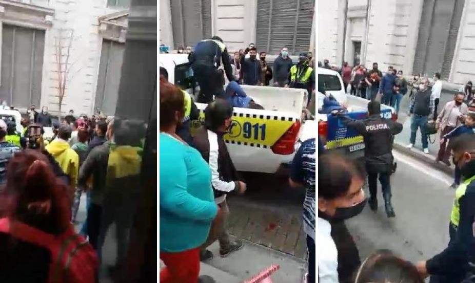El hombre, al ver el accionar de la mujer y la cantidad de gente que lo perseguía, intentó refugiarse en la galería ubicada en calle Maipú. La Policía tuvo que intervenir para evitar que lo linchen y se lo llevaron detenido.