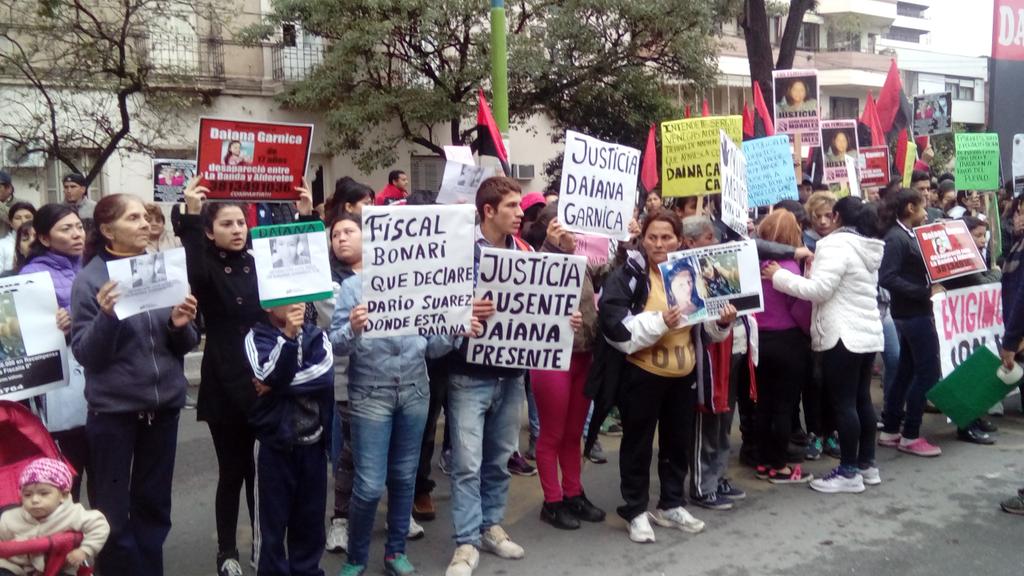 Es la tercera vez que los allegados a la muchacha salen a las calles. Primero cortaron la ruta 304 y luego la avenida Sarmiento, frente a los Tribunales. Si bien mantienen la esperanza de hallarla con vida, acusan a Darío Suárez por su desaparición.