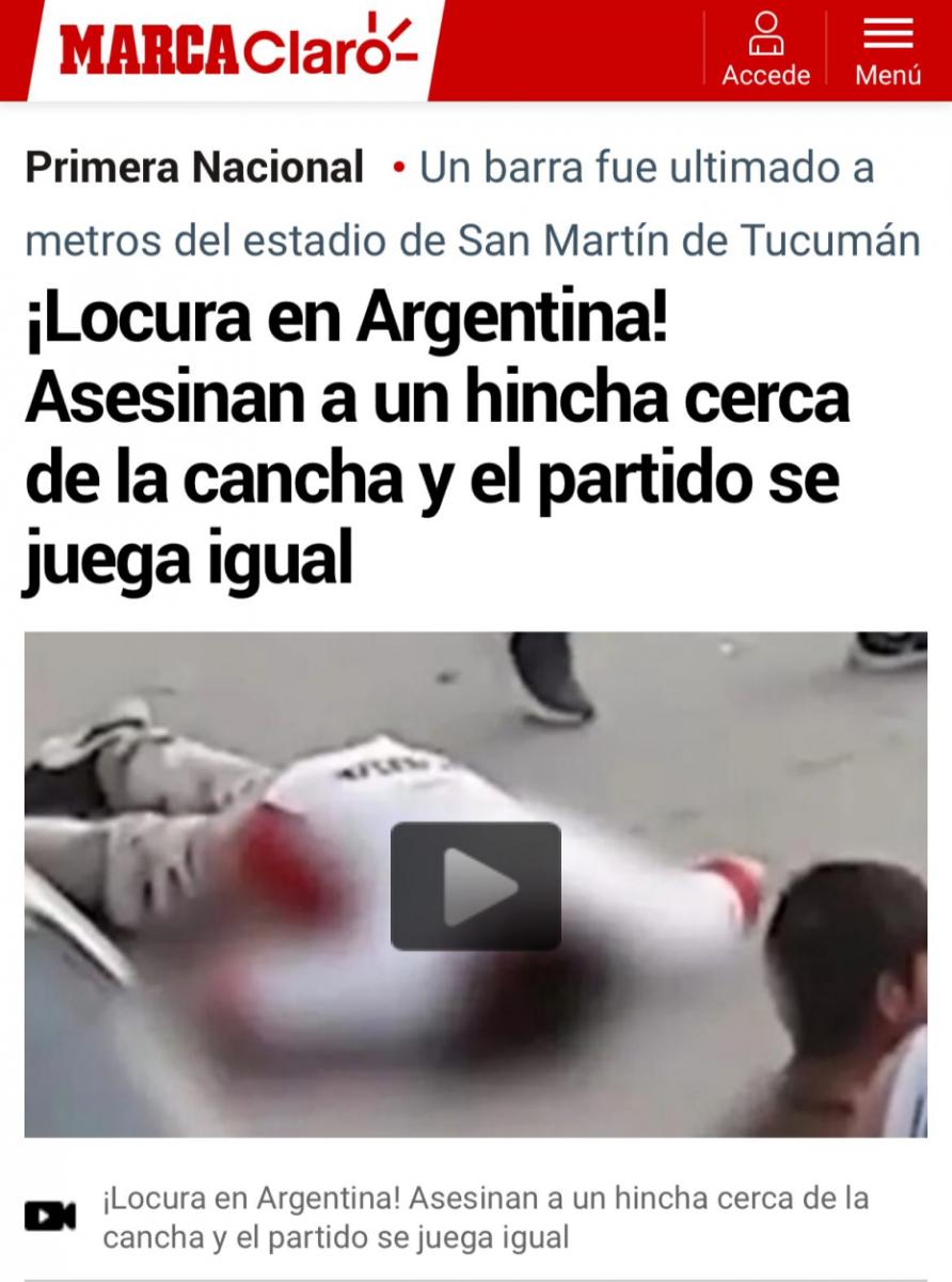 “¡Locura en Argentina! ¡Asesinan a un hincha cerca de la cancha y el partido se jugó igual¡”, tituló con signos de admiración el reconocido diario español Marca.