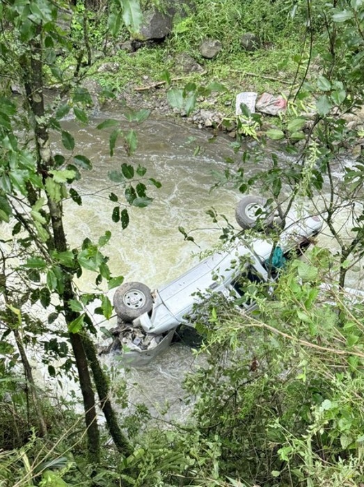 Como consecuencia, el vehículo perdió el control, chocó contra un árbol y cayó al vacío, quedando detenido tras el fuerte impacto.