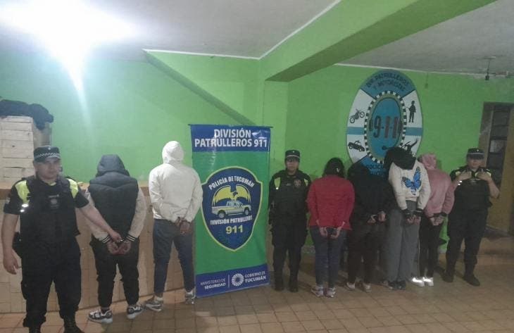 En la noche del miércoles, la Policía de Tucumán detuvo a ocho personas, entre ellas dos menores de edad, acusadas de amenazar con un arma de fuego a una mujer para usurparle su casa en el Barrio 2 de Septiembre, en la zona de Canal Sur y calle Poviña. El operativo fue realizado por efectivos de la División Patrulleros 911, quienes ingresaron al domicilio denunciado y arrestaron a los sospechosos, secuestrando una pistola, dos réplicas de armas de fuego, una motocicleta y cuatro teléfonos celulares.