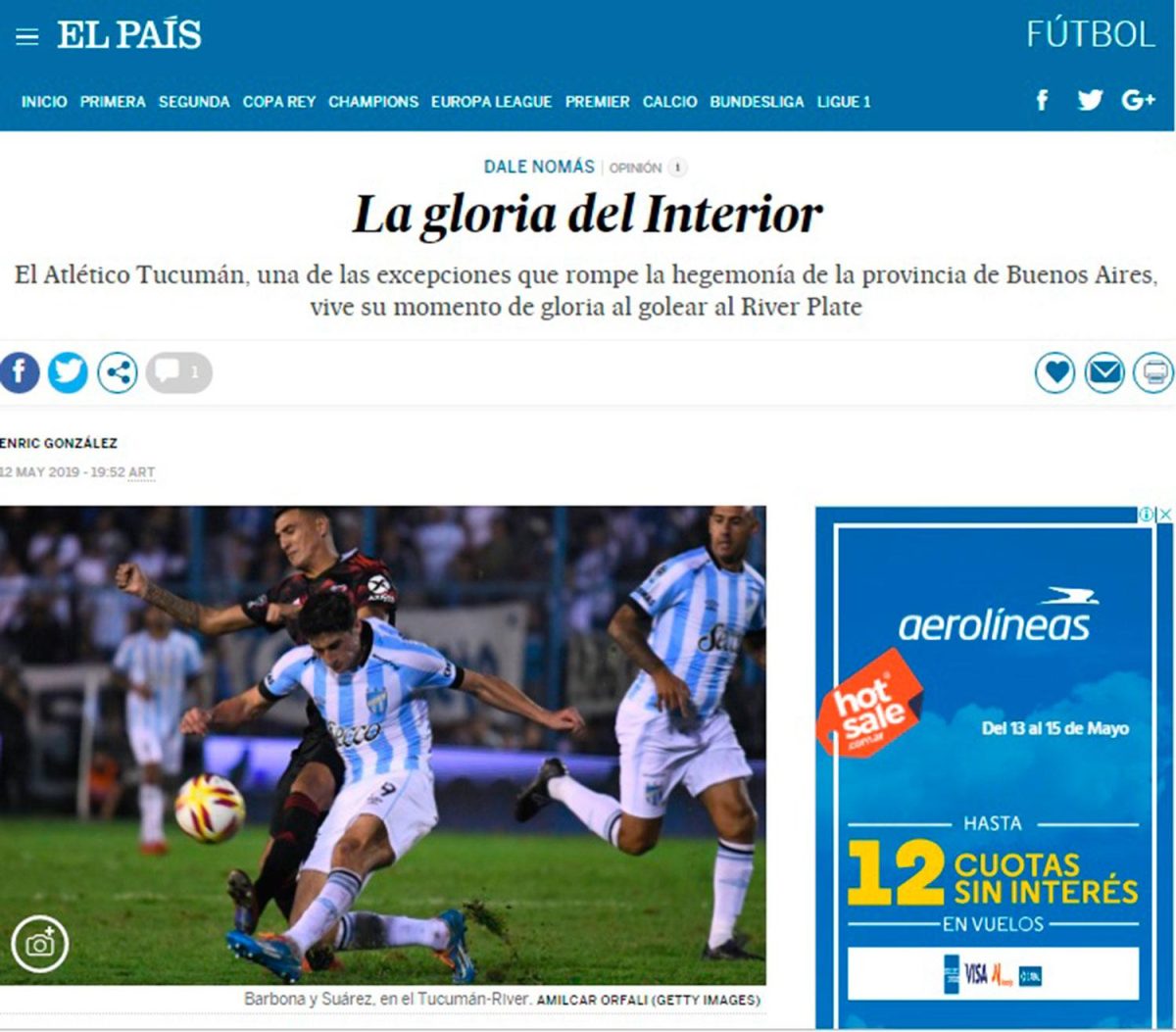 El prestigioso diario El País, de España, publicó un artículo que bien podría ser uno de los máximos orgullos de los hinchas de fútbol del interior en general y de los hinchas “decanos” en particular. Con el título “La Gloria del Interior” el periodista Enric González, destaca la perfomance del elenco tucumano con una crónica que enorgullece al pueblo “Decano”, cada vez más reconocido.