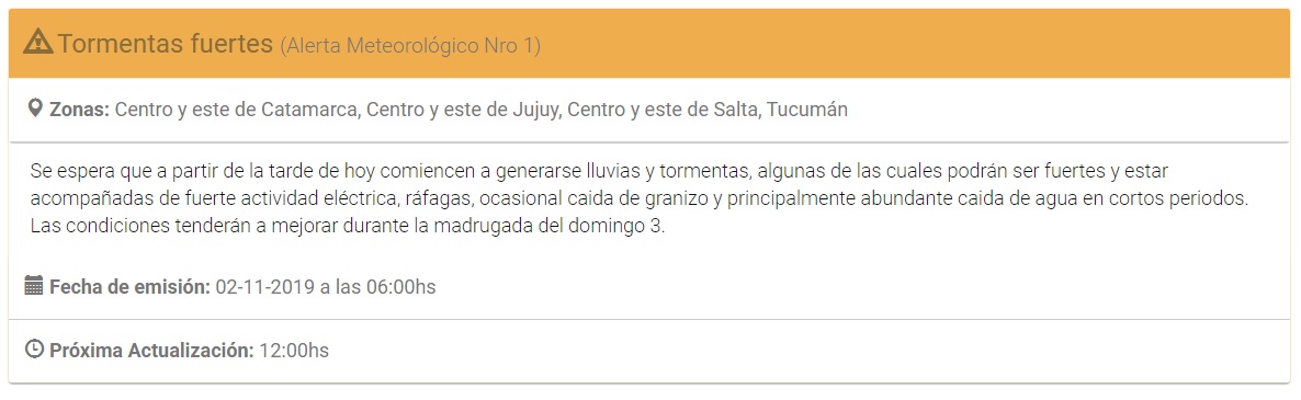 El Servicio Meteorológico Nacional (SMN), difundió el comunicado y alerto: “Se espera que a partir de la tarde de hoy comiencen a generarse lluvias y tormentas, algunas de las cuales podrán ser fuertes y estar acompañadas de fuerte actividad eléctrica, ráfagas, ocasional caída de granizo y principalmente abundante caída de agua en cortos periodos”, detalla el organismo.