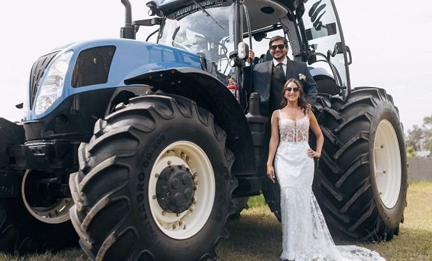 Noelia compartió: “La única condición de mi pareja era que entrásemos a nuestra fiesta en el tractor. Así que tuvimos que organizar toda la logística y hasta cambiar el horario del casamiento. Además de ser su pasión, el campo lo conecta con su familia.”
